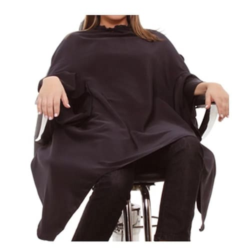 Capa de cetim com manga e tiras aderentes preta santa cara 1852 a capa cetim da santa clara foi desenvolvida pensando no profissional, que trabalha tanto em casa ou em salões de beleza, visando proteger o cliente durante a hora do corte ou em procedimentos que possam cair respingos no momento da aplicação das químicas nos cabelos. Confeccionada em material impermeável, ela não absorve líquidos, protegendo a roupa e a pele daqueles que a utilizam. Indispensáveis no. Modo de usar: avise ao seu cliente que a capa será colocada. Depois vista a capa de cetim no seu cliente e feche o botão. Após o procedimento, basta retirar a capa, fazer a higiênização e usar novamente. Benefícios: - ; - protege de respingos; - material impermeável; - protege a roupa e a pele do seu cliente. - com manga e tiras aderentes;