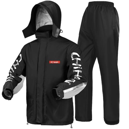 - À PROVA DE VENTO - O design de fivela dupla solta na capa de chuva e na gola alta resiste a ventos fortes e evita que o capuz se solte durante a condução. Bolso escondido na gola traseira para armazenamento do capuz