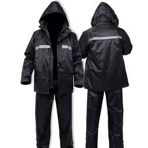 Material: PVC e poliéster impermeáveis. Jaqueta: Com capuz e proteção extra sobre o zíper. Calça: Modelagem confortável para liberdade de movimento. Forro: Malha 100% poliéster para maior conforto. Cor: Preta. Tamanho único.