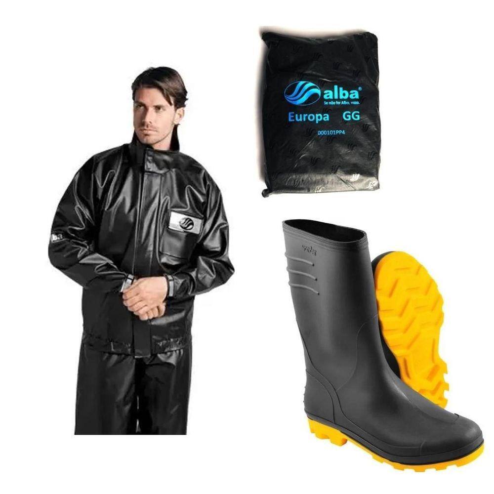 Kit Capa Conjunto Roupa De Chuva Moto Motoqueiro Alba Tam Gg + Bota Tam 43 Galocha Medio Grendene