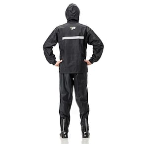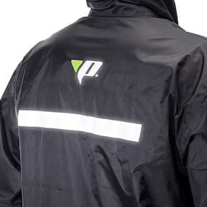Refletivo nas costas e na calça. Com capuz.
