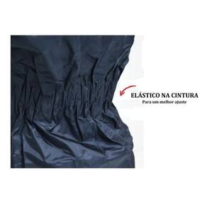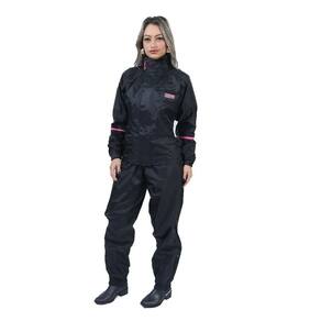 As capas de chuva confeccionada em 100% nylon com todo confortos modelo confort light Proteção para seu passeio com fitas refletivas nas costas. Fechamento da camisa com tecido adesivo e zíper Possui elástico na cintura da calça Zíper na barra Com gola alta fechamento com tecido adesivo