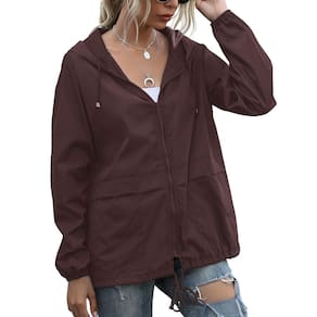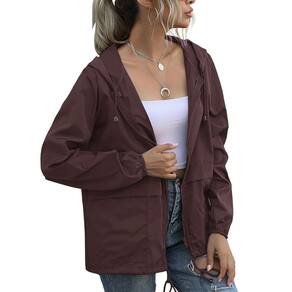 PESION Capa de chuva feminina impermeável leve, corta-vento com capuz e bolso para uso ao ar livre, Café, 3GG - Material impermeável e à prova de vento, secagem rápida, faz com que esta jaqueta corta-vento possa lidar com garoas com facilidade. - Punhos elásticos personalizam o ajuste, o capuz com cordão e a bainha com cordão fazem com que a jaqueta à prova d'água fique firme para você, bloqueia a chuva e o vento e mantém você seco. - Zíper suave e durável bloqueia o vento da costura do zíper. Ambos os bolsos laterais são ideais para colocar e soltar suas mãos. - A jaqueta corta-vento é muito portátil e não se torna pesada ao escalar uma montanha. Calor, resistência à água e proteção solar. Perfeito para caminhadas, escaladas, viagens, acampamento - Uma capa de chuva perfeita ideal para uso ao ar livre. É mais do que uma capa de chuva. Esta jaqueta de chuva também pode ser usada como uma jaqueta leve casual. É um estilo moderno.