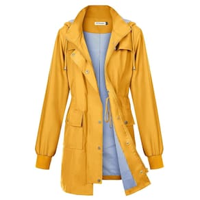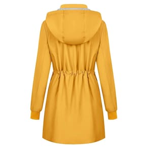 Casacos de chuva femininos impermeáveis com capuz - ?Design de capa de chuva?? Cordão ajustável oculto na cintura melhora a estética do corpo ? O design moderno do forro listrado vertical faz você parecer muito magra e chique ?Dois bolsos frontais com botões garantem que os itens não caiam. ?Punhos elásticos de manga comprida e design de capuz de gola alta melhoram a resistência ao vento ?Longo o suficiente para cobrir seu quadril. O capuz removível cria 2 visuais completamente diferentes e pode ser parcialmente limpo durante o processo de limpeza para prolongar sua vida útil - ?Material da capa de chuva?Revestimento 100% poliéster e forro 100% algodão. Impermeável / leve / secagem rápida / à prova de vento / respirável / impermeável / confortável de usar. Pode ser embalado em uma pequena bolsa compacta que é fácil de ser transportada em sua mochila diária e perfeita para viagens ou uso casual, e também reduz o consumo de energia no corpo. - ?Ocasiões?O tecido de poliéster tem uma densidade maior e pode ser mantido seco a qualquer momento. Não é facilmente penetrado por chuva leve ou neve, mas não fique muito tempo na chuva forte. Este sobretudo é adequado para uso diário, acampamento, caminhada, equitação, ciclismo, escalada, piquenique, caminhadas, viagens, passear com o cachorro, assistir a jogos de bola e outras atividades e esportes ao ar livre. - ?Cuidados com as capas de chuva femininas?Lavar à mão em baixa temperatura. Recomenda-se lavar a seco. Lavar à máquina facilmente danifica o tecido impermeável. - ?Aviso sobre o tamanho? Esta capa de chuva feminina é casual e grande o suficiente, fica grande para mulheres pequenas, escolha um tamanho abaixo se você for magra. O modelo na imagem tem 175 cm e 52 kg. O tamanho dela é pequeno.