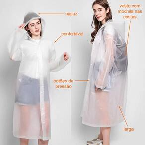 1. Essa capa de chuva é resistente à água? Sim, essa capa de chuva é 100% impermeável e garante que você fique seco a mesmo nos dias de chuva intensa.