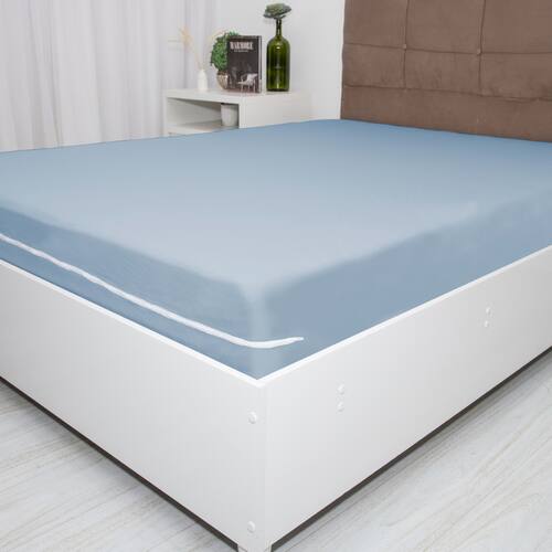 Capa de Colchão Solteiro Malha Liso Doce Vida Peça com Zíper - Azul