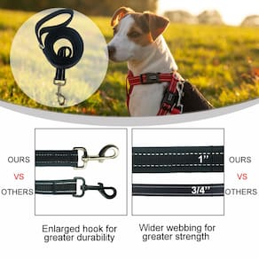 - Qualidade e durabilidade premium: esta coleira tem 1 polegada de largura e vem em comprimentos de 4 pés, 5 pés e 6 pés nas cores preto, vermelho, rosa e azul. É feito de nylon de alta qualidade, forte e durável. A costura cruzada é usada em cada parte articulada da seção de fixação do anel D e da alça dupla; ela não quebra facilmente, mesmo quando puxada com força. As costuras reforçadas o tornam perfeito para caminhadas diárias, treinamentos e aventuras ao ar livre com seu cão.