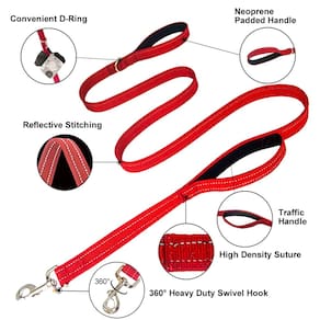 - Qualidade e durabilidade premium: esta coleira tem 1 polegada de largura e vem em comprimentos de 4 pés, 5 pés e 6 pés nas cores preto, vermelho, rosa e azul. É feito de nylon de alta qualidade, forte e durável. A costura cruzada é usada em cada parte articulada da seção de fixação do anel D e da alça dupla; ela não quebra facilmente, mesmo quando puxada com força. As costuras reforçadas o tornam perfeito para caminhadas diárias, treinamentos e aventuras ao ar livre com seu cão.