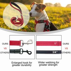 - Alças acolchoadas duplas: a alça é acolchoada por dentro para uma pegada confortável e oferece proteção extra, mais rápida e segura contra o estrangulamento da coleira em sua mão em caso de emergência em que seu cão puxa com raiva.