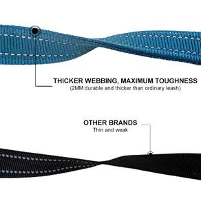 - Alças acolchoadas duplas: a alça é acolchoada por dentro para uma pegada confortável e oferece proteção extra, mais rápida e segura contra o estrangulamento da coleira em sua mão em caso de emergência em que seu cão puxa com raiva.