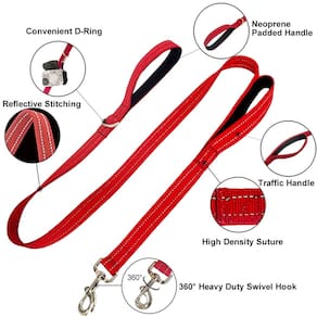- Qualidade e durabilidade premium: esta coleira tem 1 polegada de largura e vem em comprimentos de 4 pés, 5 pés e 6 pés nas cores preto, vermelho, rosa e azul. É feito de nylon de alta qualidade, forte e durável. A costura cruzada é usada em cada parte articulada da seção de fixação do anel D e da alça dupla; ela não quebra facilmente, mesmo quando puxada com força. As costuras reforçadas o tornam perfeito para caminhadas diárias, treinamentos e aventuras ao ar livre com seu cão.