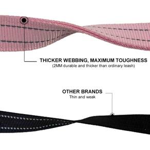 - Alças acolchoadas duplas: a alça é acolchoada por dentro para uma pegada confortável e oferece proteção extra, mais rápida e segura contra o estrangulamento da coleira em sua mão em caso de emergência em que seu cão puxa com raiva.