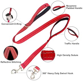 - Qualidade e durabilidade premium: esta coleira tem 1 polegada de largura e vem em comprimentos de 4 pés, 5 pés e 6 pés nas cores preto, vermelho, rosa e azul. É feito de nylon de alta qualidade, forte e durável. A costura cruzada é usada em cada parte articulada da seção de fixação do anel D e da alça dupla; ela não quebra facilmente, mesmo quando puxada com força. As costuras reforçadas o tornam perfeito para caminhadas diárias, treinamentos e aventuras ao ar livre com seu cão.