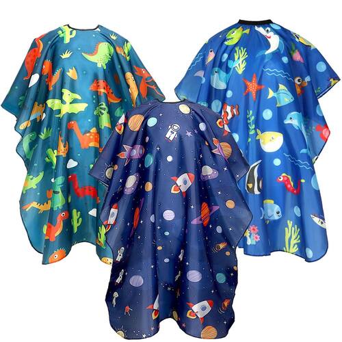 - Padrões de desenho animado: a capa de corte de cabelo tem padrão de universo de desenho animado, padrões de dinossauros de desenhos animados e padrões de vida marinha de desenho animado, cada capa de corte de cabelo infantil é vívida e adorável, adicionando interesse à experiência de corte de cabelo das crianças. Estas capas de corte de cabelo para crianças podem ser usadas não apenas para cortes de cabelo, mas também ideais para outras atividades manuais ou de pintura para proteger as roupas das crianças de manchas