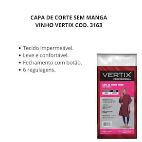 A capa de corte Bertix é fabricada em tecido especial que a torna resistente a umidade e as manchas, mantendo a capa leve e confortável.
