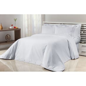 Tecido: 100% algodão egípcio 200 fios, garantindo maciez e durabilidade. Tamanho: Queen (2,60m x 2,40m), ideal para camas de casal. Enchimento: 100% poliéster, proporcionando leveza e conforto térmico. Fechamento: Zíper invisível para facilitar a troca e lavagem. Acabamento: Costuras reforçadas e acabamento impecável.