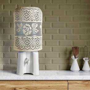 Capa de Galão 20 litros em Renda Valência Interlar A Capa de Galão em renda ilustra características românticas, possui pontos que destacam a forma de flores. É ideal para decorar a sua cozinha e deixá-la mais charmosa