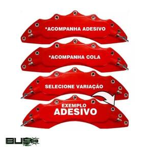 Um acessório automotivo que serve para valorizar a estética do seu veículo A capa de pinça de freio é ideal para um visual tunning e esportivo. Produto de qualidade, sendo resistente ao calor por conta do seu material de fabricação. Temos varias nomes de veículos ou montadoras disponíveis, consulte o vendedor no campo de perguntas Recomendado para aro 16 ou acima - acabamento de alta qualidade - capas para pinça de freio - 240mm dianteiro - 240mm traseiro - universal, não interfere na ação dos freios, resiste a altas temperaturas feitas em plástico abs. - compatível com rodas de tamanho 16 polegadas ou acima - instalação através de silicone de alta temperatura encontrada em auto peças. Sugestão para instalação: desmonte a roda e limpe bem a pinça de freio simule a posição correta para que não haja atrito com a roda aplique a cola na capa e pinça cole e capa sobre a pinça prenda com cinta plástico ou fita adesiva, para mantê-la bem firme até a secagem. verificar tempo de secagem na embalagem da cola Marca: Bugtech