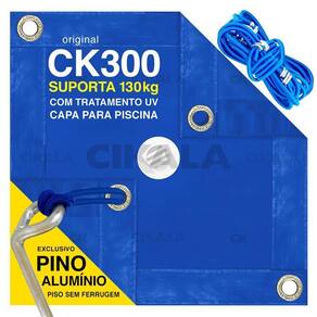 Lona capa para proteção de piscina ck300 resistente a cloro + kit de instalação1 - proteção contra sujeira externa2 - kit completo para instalação3 - anti-uv e antifúngica4 - retenção térmica5 - polietileno impermeável biodegradávelqual medida comprarCompre 50cm maior que sua piscina. Por exemplo, para uma piscina de 6x3 metros, compre a capa de piscina 6,5x3,5.Kit de instalação- buchas brancas específicas para cloro- extensores elásticos duplos de 30cm- válvula para drenar água- exclusivos pinos em alumínio de 6,5mm: mais grosso e resistente, os únicos que não enferrujam e danificam o piso da piscina. Qualidade para a vida todainstalação1 - centralize a capa na piscina e faça marcações com uma distância de 25 cm para cada lado, em relação a borda da piscina;2 - fure o chão a cada metro com uma broca tamanho 12 e insira as buchas;3 - fixe os extensores nos pinos com um nó tipo boca de lobo e prenda-os nos ilhoses da capa.Cuidados e garantiaÉ primoridal que tenha água por baixo da capa, a uma distância mínima de aproximadamente 20cm ou dois palmos.A não utilização do dreno torna obrigatório o uso de flutuadores por baixo da capa. A garantia não cobre rasgos ou soltura de ilhoses causados por acúmulo de água sobre a capa.O excesso de produtos químicos danifica a capa, causando ressecamento e afetando sua vida útil. A garantia não cobre defeitos causados por excesso de produtos químicos.Em caso da necessidade de tratamento de choque com cloro, remova completamente a capa, retomando seu uso somente após a estabilização do nível ideal do cloro 1,0 a 3,0 ppm , ou aguardar 3 horas para cobrir a piscina.Ao aparecer sinais de deterioração, inutilize o produto.- garantia de 30 dias contra defeitos de fabricação.Garantia não cobre mal uso e/ou fatores naturaisConsulte-nos antes de retirar ou solicitar a coleta do pedido