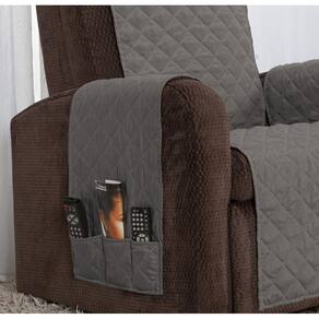 Contém na embalagem: 1 Protetor para poltrona de face única com medidas: Capa: 50cm larg x 1,90m alt/Braços: 80cm comp x 40cm larg - Porta objetos no braço do lado direito - Medida total: 2,10m larg x 1,90m alt