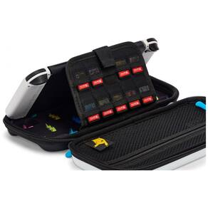 A capa de proteção PowerA para Nintendo Switch foi desenvolvida para transporte seguro do console em modo portátil, oferecendo estrutura rígida externa e interior moldado para melhor acomodação do equipamento. O revestimento interno em feltro ajuda a reduzir riscos na superfície do console, enquanto o compartimento em malha com zíper permite armazenar pequenos acessórios de forma organizada.