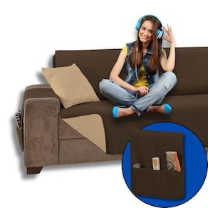 Capa De Sofá 4 Lugares Impermeável Com Bolsos Lavável Atual