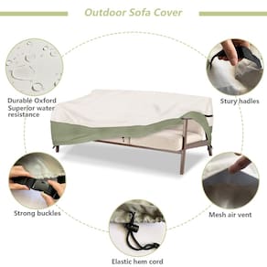 - Design exclusivo: tem 2 alças em ambos os lados das capas de móveis de pátio para facilitar a instalação e remoção, o cordão inferior pode garantir que a capa se fixe firmemente com o sofá. E a parte inferior da capa tem fivelas para garantir que a capa fique bem presa ao sofá em dias de vento