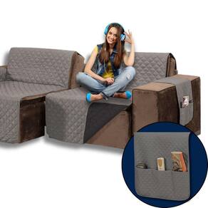Capa De Sofá Retrátil 2,40M Dupla Face Matelada Com Bolsos