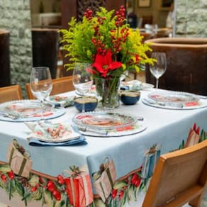 ATENÇÃO: As cores dos produtos podem sofrer variações em função das características do monitor e do ambiente durante sua visualização. As capas para sousplat são produzidas em tecido durand, uma tecnologia que proporciona riqueza de detalhes na estampa e visual elegante, além da durabilidade e resistência a altas temperaturas. Pensando sempre um passo adiante, a linha Natal já está disponível em nosso site. Decore seu momento perfeito com opções especiais em Mesa Posta. As estampas são versáteis compondo vários estilos de mesa posta e o melhor da data.
