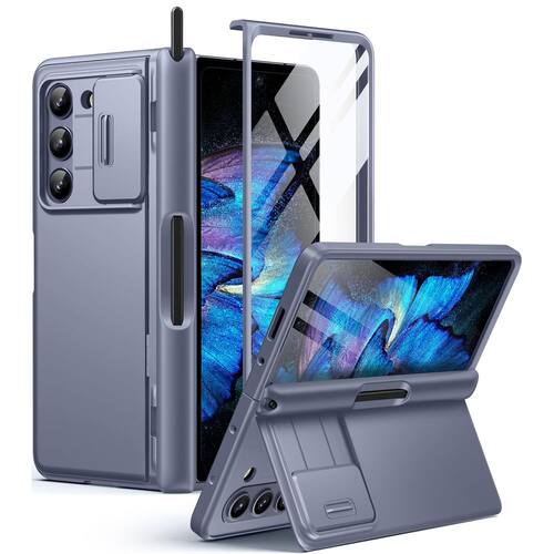 BERFY Capa para Samsung Galaxy Z Fold 5 com suporte para S Pen, [protetor de tela integrado, suporte e capa de câmera deslizante] Capa rígida fina à prova de choque para Samsung Z Fold 5, cinza e azul - [Compatibilidade e substituição para qualquer dano] Compatível apenas com o Samsung Galaxy Z Fold 5 (versão 2023). Para quaisquer problemas inesperados, como modelo errado, capa com defeito ou itens danificados, uma equipe dedicada de atendimento ao cliente fornecerá uma resposta satisfatória! Além disso, a capa Z Fold 5 suporta carregamento sem fio sem precisar remover a capa ao carregar sem fio - [Suporte oculto, liberte suas mãos] Esta capa para Samsung Z Fold 5 possui suporte robusto integrado que pode ser colocado horizontalmente, você pode escolher diferentes ângulos para assistir a vídeos, ler livros, navegar na web, conversar por vídeo com amigos, liberar suas mãos a qualquer momento, aproveitar os efeitos visuais HD da tela grande, quando não estiver em uso, pode ficar perfeitamente oculta, não adicionará volume extra - [Suporte de caneta S e proteção de dobradiça] A capa para Galaxy Z Fold 5 possui uma dobradiça completa com um suporte embutido para S Pen, facilitando o uso da S Pen sempre que você precisar, e o entalhe personalizado na capa da dobradiça robusta e precisa torna rápida e fácil colocar ou tirar a S Pen, evitando que ela se perca, e fornecerá proteção ainda melhor para sua S-Pen, para que você possa aproveitar o rabisco instantâneo bling fun of the S Caneta onde quer que você vá (AVISO: caneta S não incluída) - [Capa de câmera deslizante e protetor de tela HD] Esta capa Z Fold 5 embutida de vidro temperado 9H de alta sensibilidade mantém a sensibilidade da tela autêntico enquanto protege a tela frontal de arranhões e impactos. A capa com uma capa de câmera deslizante com travas fixas em ambos os lados não desliza livremente, você pode deslizar facilmente a capa da lente para a esquerda e para a direita para melhorar a proteção da lente da câmera, proteger melhor sua privacidade e lente - [Proteção à prova de choque de grau militar] Esta capa para Samsung Z Fold 5 é certificada com teste de grau militar à prova de choque para fornecer excelente proteção contra choques e quedas. A capa possui um design de camada dupla com uma capa traseira de policarbonato resistente de alta qualidade que protege contra quedas pesadas, choques, arranhões e quedas. A tela de borda elevada e a câmera evitam arranhões e garantem proteção total e robusta de todos os ângulos