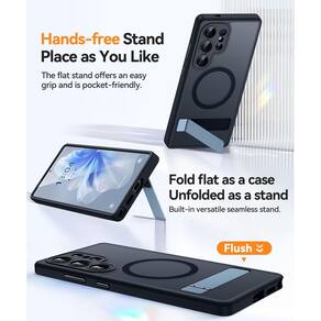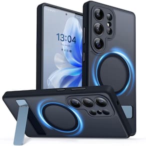 CANSHN Suporte magnético forte e sem costura projetado para Samsung Galaxy S25 Ultra (2025) [proteção total da câmera] [suporte ajustável] [compatível com Magsafe] capa protetora traseira fosca translúcida, preta - Feita apenas para Samsung Galaxy S25 Ultra com tela de 6,8 polegadas. Confirme o modelo do seu telefone antes de fazer o pedido - Levante-se, ligue: (CANSHN MAIS RECENTE PARA 2025 Capa de telefone para Samsung Galaxy S25 Ultra.) O suporte de telefone oferece uma solução tecnológica que combina estética, proteção e conveniência. - Forte conectividade magnética: compatível com carregadores sem fio MagSafe e Qi, esta capa se fixa com segurança a acessórios magnéticos como carteiras e suportes de carro, garantindo uma conexão estável mesmo durante a rotação ou movimento - Textura fosca e acabamento sedoso: Feita de uma moldura de TPU flexível e uma parte traseira de policarbonato rígido com acabamento fosco, proporciona uma sensação premium. O design antiderrapante e resistente a impressões digitais é fácil de limpar e suporta carregamento sem fio. Disponível em para combinar com seu estilo - Resistência superior a quedas: construída a partir de material TPU espesso e à prova de choque, a capa aumenta a resistência a quedas. Cada canto possui almofadas de ar que absorvem impactos para maior proteção