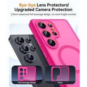 RígidaCANSHN Cobertura total projetada para Samsung Galaxy S25 Ultra (2025) [proteção total da câmera] [compatível com Magsafe] Capa protetora traseira fosca translúcida para celular, rosa choque