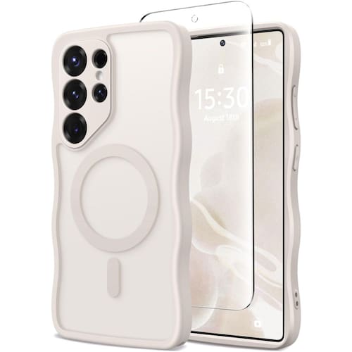 CAPRARO Capa para Samsung Galaxy S25 Ultra para mulheres e meninas, atualizada [proteção total da câmera] [compatível com MagSafe] Capa de telefone fosca translúcida ondulada fofa para Samsung S25 Ultra - ?Compatibilidade e embalagem?Projetado especificamente para Samsung Galaxy S25 Ultra 5G de 6,9 polegadas. Verifique o tamanho do modelo do telefone antes de comprar. O pacote inclui 1 x capa magnética S25 Ultra e 1 x protetor de tela; - ?Bloqueio magnético super forte? Com ímãs N52 poderosos integrados, esta capa para Galaxy S25 Ultra é perfeitamente compatível com carregadores MagSafe e outros carregadores sem fio Qi. Ela também se conecta firmemente a outros acessórios magnéticos como carteiras magnéticas, carregadores portáteis e suportes de carro, garantindo uma conexão segura e estável mesmo durante a rotação ou movimento; - ?Design encaracolado translúcido fosco e bonito com moldura ondulada?A capa de celular fosca translúcida para Samsung Galaxy S25 Ultra combina durabilidade e estilo perfeitamente. Possui uma moldura de TPU flexível e uma parte traseira rígida de policarbonato, com um revestimento fosco que proporciona uma sensação de toque sedoso e é antiderrapante, antiimpressões digitais, fácil de limpar. Lindo design ondulado encaracolado, oferecendo uma variedade de cores para se adequar ao seu estilo pessoal; - ?Proteção de câmera de cobertura total atualizada?Nossa capa para Samsung S25 Ultra possui uma proteção de cobertura total atualizada para a câmera, com uma borda elevada de 0,11 mm ao redor da lente. Oferece proteção abrangente para a lente sem afetar a fotografia; - ?Excelente proteção contra quedas de nível militar?A capa para celular CAPRARO Samsung Galaxy S25 Ultra é feita de material TPU espesso à prova de choque e possui airbags de 360° em todos os 4 cantos, o que pode dispersar efetivamente o impacto violento quando o telefone cai e colide;