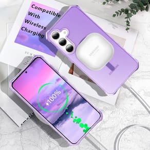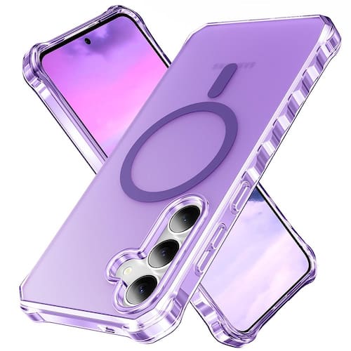 Caselovely Capa magnética para Samsung Galaxy S25 [proteção contra quedas de grau militar] [Forma da moldura ondulada] Capa fina fosca para S25 de 6,2 polegadas, roxa - [Toque aveludado e borda ondulada] A capa para Samsung Galaxy S25 é feita com TPE e TPU de ponta, incorporando um novo revestimento aveludado. A parte traseira translúcida revela e até melhora a beleza autêntico do seu telefone. E a parte traseira de policarbonato e as bordas de borracha flexíveis trazem mais boa aderência à capa de celular que você usa. - [Super Absorção Magnética] Com ímã poderoso integrado, esta capa de celular para Samsung S25 é compatível com a maioria dos acessórios, como carregadores sem fio, suportes magnéticos para carros, bateria magnética, carteira magnética e assim por diante. O poderoso ímã se encaixa perfeitamente com o Samsung Galaxy S25, proporcionando uma experiência mágica de fixação e carregamento sem fio mais rápido, e não cai facilmente. - [Proteção de grau militar certificada] A capa para celular Samsung Galaxy S25 garante a segurança do telefone através de várias estruturas de amortecimento, incluindo silicone macio e resistente, airbags internos à prova de choque, proteção total da lente da câmera e parte traseira rígida do PC, permitindo suportar mais de 5.000 quedas de alturas de 2,5 m. As bordas elevadas de 1,2 mm e 1,5 mm evitam que a câmera e a tela sejam arranhadas. Evita reparos caros e alcança um equilíbrio ideal entre estilo e proteção. - [Ajuste confortável e detalhes precisos] Todos os botões e recortes da capa fina para Samsung S25 se alinham perfeitamente com o telefone e não adicionam volume desnecessário. A abertura precisa da lente da câmera não apenas protege com precisão as lentes caras, mas também não afeta a clareza da foto. O design ergonômico exclusivo para botões faz você se sentir muito mais fácil de pressionar com uma sensação sólida de clique e um bom feedback. - [Compatibilidade] Esta capa serve para Samsung Galaxy S25. Se tiver problemas, através do Centro de mensagens da Amazon