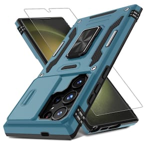 Capas para Samsung Galaxy S25 Ultra. O pacote inclui: 1 capa para celular Galaxy S25 Ultra, 1 protetor de tela para Galaxy S25 Ultra, 1 kit de limpeza Característica: 1. A capa S25 Ultra é a opção exclusiva para você. Certificada pelo padrão militar 2. A capa deslizante também pode proteger a lente, esta capa possui duas barras de proteção de aço inoxidável na parte traseira para evitar danos externos e resultando em peeling de tinta 3 A capa de celular para S25 Ultra fina com a capa deslizante da câmera; ela se combina para dar a você a proteção mais abrangente para o seu dispositivo caro - Capa protetora com capa deslizante para câmera especialmente projetada para Samsung Galaxy S25 Ultra de 6,9 polegadas (lançado em 2025). Não serve para outro dispositivo! O recorte preciso se encaixa em cada botão, câmera, alto-falantes e portas com precisão, fácil de pressionar e acessar - Proteção de nível militar: capa à prova de choque de camada dupla feita de TPU + PC. Esta estrutura de almofada multicamadas fornece proteção adicional de absorção de choque. Certificado pelo padrão militar, sobreviveu a mais de 8.000 testes de queda de até 2,5 m! O interior de TPU flexível absorve impactos internos. Além disso, o exterior com quatro cantos reforçados pode absorver efetivamente o impacto da queda - Proteção para câmera e tela: a capa deslizante da câmera protege a lente da câmera da capa do telefone contra arranhões e arranhões. As bordas da tela de 1,8 mm sutilmente aprimoradas e a película de vidro fornecem proteção extra e abrangente. Garanta que todos os aspectos do seu telefone estejam protegidos exclusivamente com - Suporte de anel magnético: capa multifuncional recentemente atualizada, suporte de anel integrado e patch de metal. O anel giratório oferece dois modos de suporte para visualização horizontal vertical, para que possa ser utilizado como suporte de anel e soltar sua mão ao assistir a vídeos. O patch de metal se prende facilmente ao suporte magnético do carro, muito conveniente durante o tempo de condução para navegação. Você vai adorar como é conveniente com funções tão poderosas - O que você recebe: o pacote vem com 1 capa de celular e 1 pacote de protetor de tela de vidro temperado. Aviso: Devido ao anel de metal na parte de trás, esta capa NÃO funcionará com função de carregamento sem fio.