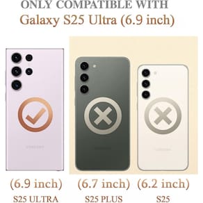 Capas para Samsung Galaxy S25 Ultra. O pacote inclui: 1 capa para celular Galaxy S25 Ultra, 1 protetor de tela para Galaxy S25 Ultra, 1 kit de limpeza Característica: 1. A capa S25 Ultra é a opção exclusiva para você. Certificada pelo padrão militar 2. A capa deslizante também pode proteger a lente, esta capa possui duas barras de proteção de aço inoxidável na parte traseira para evitar danos externos e resultando em peeling de tinta 3 A capa de celular para S25 Ultra fina com a capa deslizante da câmera; ela se combina para dar a você a proteção mais abrangente para o seu dispositivo caro - Capa protetora com capa deslizante para câmera especialmente projetada para Samsung Galaxy S25 Ultra de 6,9 polegadas (lançado em 2025). Não serve para outro dispositivo! O recorte preciso se encaixa em cada botão, câmera, alto-falantes e portas com precisão, fácil de pressionar e acessar - Proteção de nível militar: capa à prova de choque de camada dupla feita de TPU + PC. Esta estrutura de almofada multicamadas fornece proteção adicional de absorção de choque. Certificado pelo padrão militar, sobreviveu a mais de 8.000 testes de queda de até 2,5 m! O interior de TPU flexível absorve impactos internos. Além disso, o exterior com quatro cantos reforçados pode absorver efetivamente o impacto da queda - Proteção para câmera e tela: a capa deslizante da câmera protege a lente da câmera da capa do telefone contra arranhões e arranhões. As bordas da tela de 1,8 mm sutilmente aprimoradas e a película de vidro fornecem proteção extra e abrangente. Garanta que todos os aspectos do seu telefone estejam protegidos exclusivamente com - Suporte de anel magnético: capa multifuncional recentemente atualizada, suporte de anel integrado e patch de metal. O anel giratório oferece dois modos de suporte para visualização horizontal vertical, para que possa ser utilizado como suporte de anel e soltar sua mão ao assistir a vídeos. O patch de metal se prende facilmente ao suporte magnético do carro, muito conveniente durante o tempo de condução para navegação. Você vai adorar como é conveniente com funções tão poderosas - O que você recebe: o pacote vem com 1 capa de celular e 1 pacote de protetor de tela de vidro temperado. Aviso: Devido ao anel de metal na parte de trás, esta capa NÃO funcionará com função de carregamento sem fio.