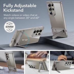 ESR Capa para Samsung Galaxy S24 Ultra, capa com suporte S24 Ultra com 3 modos de suporte, proteção contra quedas de nível militar, capa fina à prova de choque com suporte patenteado, série Boost, cinza claro - Compatibilidade: apenas para Samsung Galaxy S24 Ultra; suporta carregamento sem fio com a capa - 3 modos de suporte: use as mãos livres e desfrute de um ângulo de visualização mais confortável escolhendo entre 3 modos de suporte estáveis para a família FaceTime em retrato ou acompanhe seus programas favoritos em paisagem - Suporte altamente ajustável: o design patenteado dá a você a liberdade de escolher qualquer ângulo de até 60 graus, enquanto a dobradiça durável é testada em laboratório para permanecer forte por mais de 3.000 usos - Proteção de nível militar: cantos de proteção aérea com absorção de choque, bordas elevadas da tela e protetor de câmera significam que esta capa para Galaxy S24 Ultra oferece proteção certificada de teste contra quedas, batidas e arranhões - Transparente: esta capa para Galaxy S24 Ultra com suporte tem uma parte traseira de acrílico rígido que resiste a amarelecimento e arranhões para mostrar o verdadeiro estilo do seu telefone com uma clareza deslumbrante que dura