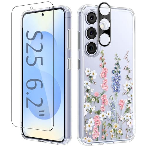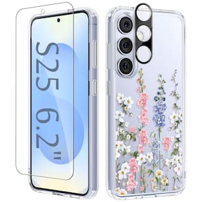 GVIEWIN Compatível com Samsung Galaxy S25 - Compatibilidade: Esta capa é compatível apenas com Samsung Galaxy S25 (6,2 polegadas, versão 2025). Verifique o modelo do seu telefone antes de fazer o pedido (consulte a imagem 2). O pacote inclui 1 capa de telefone e 1 protetor de tela e 1 protetor de lente de câmera. Aviso: não compatível com S25+ - Proteção à prova de choque de grau militar: composta de parte traseira rígida de policarbonato e borda macia de TPU, a capa é construída com quatro cantos salientes que absorvem efetivamente o choque em quedas acidentais e batidas. As molduras elevadas protegem a tela e a colisão da câmera contra arranhões e fricção diários. O protetor de vidro de dureza 9H incluído dá mais segurança para o seu novo telefone - Estampa floral chique e não amarela: com um design floral elegante, esta capa transparente combina elegância com funcionalidade. Feita de materiais transparentes e anti-amarelamento, resiste à gordura e à descoloração ao longo do tempo, garantindo que seu telefone permaneça fresco e atraente para uso a longo prazo - Recortes Precis e leve: fácil acesso a alto-falantes, botões, sensores, câmeras e outros recursos, e os botões laterais são responsivos e clicáveis; o design fino e leve oferece uma aderência confortável e cabe facilmente no seu bolso, tornando-o perfeito para uso em movimento - Suporte confiável e garantia de serviço: esta capa suporta carregamento sem fio, suporte para carro e suporte de anel de celular; Se houver algum problema com o produto, como um modelo de telefone incompatível, não hesite em entrar em contato conosco pelo Centro de mensagens da Amazon
