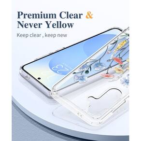 GVIEWIN Capa para Samsung Galaxy S25 Plus com protetor de tela e protetor de lente de câmera, [não amarela] Capa de telefone feminina transparente floral rígida à prova de choque para S25 Plus de 6,7 polegadas (Aconite/Azul claro) - Compatibilidade: esta capa é compatível apenas com Samsung Galaxy S25 Plus (6,7 polegadas, versão 2025); alinhamento preciso permite fácil acesso aos botões, alto-falantes e porta de carregamento; o pacote inclui uma capa floral transparente, 1 película de vidro temperado, 1 protetor de lente; confirme o modelo antes de fazer o pedido (veja a imagem 2) - Padrões florais claros e chiques: a capa apresenta estampas florais elegantes que dão ao seu telefone uma aparência única e atraente; o design transparente mostra a beleza autêntico do seu dispositivo; Criado com tecnologia de impressão avançada, o padrão permanece vibrante e resistente ao desbotamento ao longo do tempo - Proteção de nível militar 3 em 1 de 360°: composta por uma parte traseira rígida de policarbonato e uma moldura de TPU macio, esta capa absorve choques e resiste a quedas de até 3 metros; as molduras elevadas protegem a tela e a lente da câmera de arranhões; inclui um protetor de tela de vidro temperado 9H e um protetor de lente de câmera para fornecer proteção abrangente para o seu telefone - Aderência segura e não amarela: Feita com materiais premium e revestimento antiamarelamento aprimorado, esta capa resiste ao suor, raios UV e manchas que podem manter a clareza durante o uso; seu design fino e leve e borda de TPU macio fornecem uma aderência segura e uso adequado para o bolso - Suporte confiável: suporta carregamento sem fio e é compatível com a maioria dos acessórios de telefone, como suportes de anel e suportes de carro; Para qualquer problema, como incompatibilidade de modelo ou expectativas não atendidas, através do Centro de mensagens da Amazon para assistência imediata