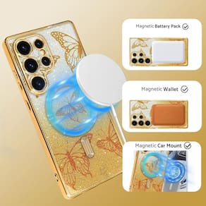 Capa de celular com glitter compatível apenas com Samsung Galaxy S25 Ultra. Recortes precisos se encaixam perfeitamente em todas as portas e permitem acessar todas as funções rapidamente. Capa de celular com ímã integrado compatível com vários dispositivos de carregamento sem fio. Fornece proteção total à prova de choque; a borda elevada protege sua tela e câmera de arranhões. - A capa de celular serve apenas para Samsung Galaxy S25 Ultra de 6,9 polegadas. Capa de telefone com anel magnético integrado compatível com todos os carregadores sem fio e carteira magnética. - PACOTE: 1 x capa de telefone, 2 x inserção de papel com glitter. O design padrão de dois estilos permite que você mude a aparência do seu telefone. Você também pode obter uma capa de celular transparente com moldura galvanizada ao remover a folha de glitter. - A capa de celular com glitter é feita de TPU macio, não se preocupe com esta capa de celular ficar fora de forma ou rachar. - Recortes precisos se ajustam perfeitamente a todas as portas; botões responsivos permitem acesso fácil. - Fornece proteção total à prova de choque; bordas elevadas evitam que sua tela e câmera arranhem.