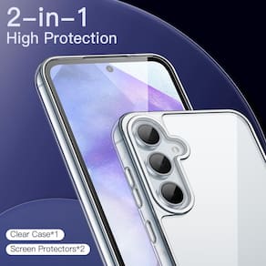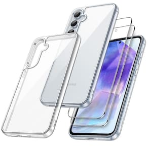 — [alta proteção 3 em 1] Feita sob medida para Samsung Galaxy A55 5G. Você receberá uma capa protetora transparente e 2 pacotes de protetores de tela de vidro temperado, oferecendo proteção abrangente ao seu dispositivo