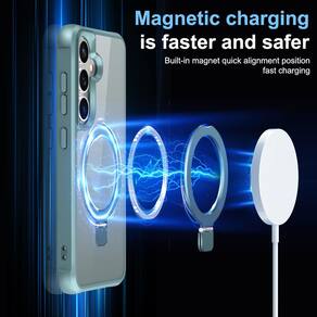 Capa fosca translúcida com anel magnético integrado e suporte para carregamento sem fio. Proteção de grau militar.Acabamento do material