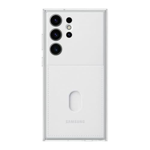 CapaSAMSUNG Capa para celular Galaxy S23 Ultra Frame, capa protetora de aparência dupla com 2 placas pretas intercambiáveis, incluindo suporte transparente e compartimento para cartão, versão dos EUA,