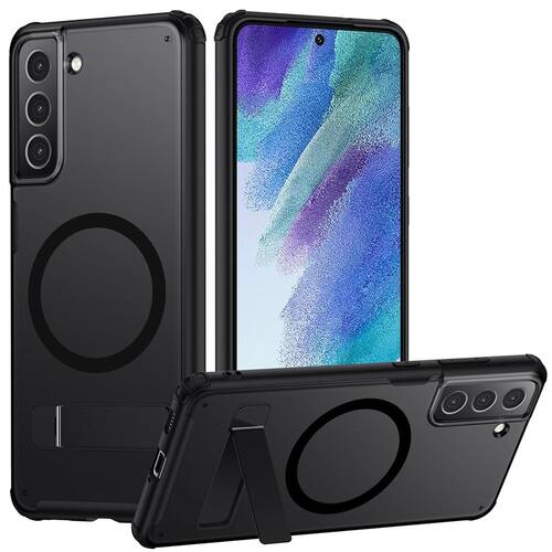 TIANNIUKE Capa magnética para Samsung Galaxy S21 FE 5G - 1??Compatível com acessórios MagSafe e carregadores sem fio?: Capa magnética projetada para Samsung Galaxy S21 FE 5G. - 2??Carregador sem fio MagSafe se encaixa perfeitamente?Esta capa magsafe fina para Galaxy S21 FE suporta todos os acessórios MagSafe, proporciona absorção automática e alinhamento perfeito para o carregamento mais rápido e estável possível. (NÃO inclui acessórios MagSafe) - 3??Um suporte ajustável integrado para suporte em vários ângulos?: É construído com dobradiças de aço de alto carbono para maior durabilidade. Os modos vertical e horizontal flexíveis permitem que você assista confortavelmente a vídeos ou conduza reuniões de negócios. Este suporte pode se misturar em todos os cenários da sua vida. - 4??Proteção contra quedas militar?Capa feita de novos materiais da Alemanha, a parte traseira fosca permanece limpa com um design inteligente de revestimento nano oleofóbico que evita impressões digitais, marcas d'água, óleo e poeira. Boa proteção sem volume, estrutura de ângulo de absorção de impacto projetada para dispersar choques severos. - 5??Proteção de tela e câmera?Design de proteção labial acima da borda da tela e a lacuna da câmera, o que pode impedir que a tela e a lente da câmera entrem em contato diretamente com a área de trabalho, evitando arranhões. - 6??Ajuste perfeito?O design de botão com tudo incluído e recortes precisos permitem fácil acesso a todas as portas e funções, operação sensível. O design de uma peça facilita a instalação e remoção sem passos tediosos.