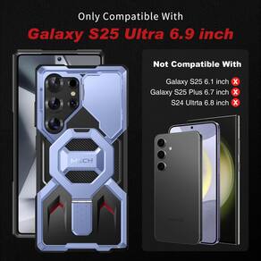 - [Proteção militar contra quedas de 360°] Esta capa para Samsung Galaxy S25 ultra combina uma capa traseira rígida de PC e uma estrutura de TPU que absorve choques para fornecer proteção dupla ao seu telefone. A parte traseira resistente do PC protege seu telefone contra rachaduras e arranhões. Quatro ângulos aprimorados à prova de choque dispersam mais de 99% das quedas e choques. A borda saliente adiciona proteção extra à tela e à câmera