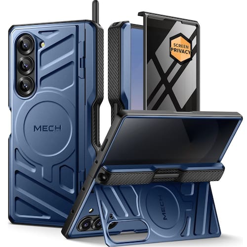 TONGATE Capa z fold6 com suporte embutido e protetor de tela de privacidade e capa de proteção de dobradiça e clipe de cinto, capa de celular zfold 6 de proteção de corpo inteiro de grau militar com suporte para caneta, azul