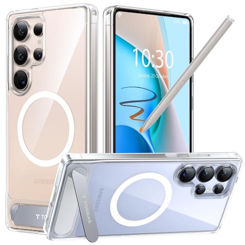 Capa para celular - TORRAS Líder da capa magnética: desde 2022, criamos ótimas capas magnéticas para usuários Samsung. Nossa capa para Samsung Galaxy S25 Ultra usa ímãs de neodímio de grau N52 com tecnologia exclusiva MegaMag-Boosted Magnetism para tornar a atração magnética extremamente poderosa. Uma placa fina e plana em forma de suporte oferece uma experiência de inclinação multiângulo e mãos livres, enquanto seu magnético integrado garante carregamento sem fio ininterrupto - Experiência de carregamento sem fio: Desfrute de estabilidade magnética confiável com uma atração 60% mais forte em comparação com outras soluções. Com força magnética poderosa de 18N, seu novo S25 Ultra pode aderir a acessórios magnéticos. Além disso, o recurso magnético forte da capa S25 Ultra também garante uma experiência eficiente de carregamento sem fio e um suporte seguro no suporte do seu carro - Diamante transparente e antiamarelamento: a parte traseira é feita de materiais de PC premium Bayer, apresentando um nano-revestimento na superfície que resiste efetivamente a manchas e suor. Testes de laboratório mostram que a duração antiamarelamento da nossa capa transparente para Samsung S25 Ultra excede a de capas transparentes comuns em mais de 6 vezes. Ela não apenas evita o amarelamento, mas também possui uma taxa de transmissão de 99%, mostrando a cor autêntico do telefone com total clareza - Proteção certificada de grau médio: esta capa é a melhor garantia para o seu novo telefone, libertando-se de choques e quedas inesperados. A estrutura de amortecimento de ar TORRAS X-Shock e o material TPU altamente resiliente oferecem proteção sólida para cada borda do seu telefone. A capa para Samsung S25 Ultra apresenta bordas elevadas de 1,0 mm para a moldura da tela e 1,5 mm para a câmera, protegendo o design angular do seu telefone - Um suporte durável integrado para suporte em vários ângulos: Certificada por mais de 30.000 testes rigorosos de dobra, a capa S25 Ultra com suporte é construída com suporte exclusivo de aço inoxidável integrado para maior durabilidade. Os modos vertical e horizontal flexíveis permitem que você assista confortavelmente a vídeos ou conduza reuniões de negócios. Este suporte pode se misturar em todos os cenários da sua vida - Um suporte não volumoso: o suporte pode ser perfeitamente dobrado na capa do Galaxy S25 Ultra sem ficar na parte traseira. Você realmente não sente o suporte aí. Com posicionamento preciso da dobradiça e um design que economiza espaço, garante operação perfeita e integridade estrutural, proporcionando uma experiência de ajuste fino - TORRAS Cuidados e detalhes delicados: esta capa de telefone com suporte é apenas para Samsung Galaxy S25 Ultra. Com botões táteis, fácil acesso à S Pen e recortes projetados com precisão, cada detalhe é meticulosamente refinado para melhorar sua experiência com o Galaxy. Se você recebeu o modelo errado, capa S25 Ultra danificada ou qualquer problema com o produto, com nosso suporte 24 horas por dia, 7 dias por semana através do Centro de mensagens da Amazon
