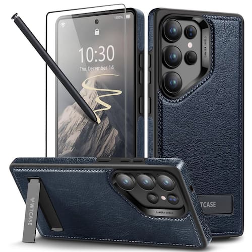 CapaCaracterísticas: - Fina, leve, sem adicionar volume aos seus dispositivos. - Ajustado à forma para manter o perfil fino e aderência confortável. - Corte preciso para todas as portas, câmera e alto-falante, botão lateral com proteção total da capa. - Fácil acesso a todos os botões com capa de botão responsiva. - Portas ampliadas com bordas elevadas se encaixam na maioria dos cabos. - Bordas elevadas ao redor da câmera, portas e tela frontal. - ?Compatível com Samsung Galaxy S25 Ultra (versão 2025)?Capa executiva e elegante compatível com Samsung Galaxy S25 Ultra (2025). Pode ser um presente de Ação de Graças ou Natal - ?Mãos livres, sem complicações?A capa para celular WTCASE Galaxy S25 Ultra incorpora um design inovador de suporte invisível. Construída com liga de alumínio aeroespacial leve e durável, a portabilidade da capa do telefone para um novo nível. Além disso, pode ser colocado no modo retrato ou paisagem de forma estável. Você pode ajustá-la entre 40°~120° conforme desejar. Aproveite cada momento assistindo - ?Compatível com acessórios MagSafe?Esta capa de telefone de couro para Samsung Galaxy S25 Ultra com parte traseira magnética forte pode ser usada junto com um suporte magnético para carro compatível com MagSafe e outros acessórios Mag-Safe, tornando sua vida um pouco mais fácil - ?Couro PU delicado e boa aderência?Feita de couro sintético premium, combinado com moldura de TPU antiderrapante e botões sensíveis, tem uma boa aderência enquanto mantém uma aparência luxuosa - ?Proteção da tela e da câmera?Bordas extra elevadas podem proteger a tela e a câmera contra arranhões diários na superfície e pequenas quedas, oferecem todas as proteções necessárias, podem proteger o Galaxy S25 Ultra melhor