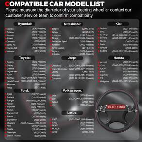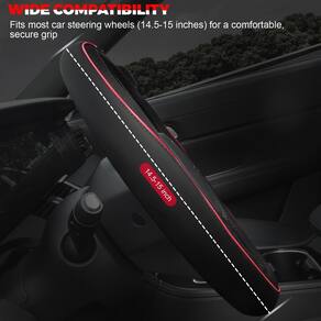 2 - Couro de microfibra de alta qualidade: Feita com uma fina camada externa de couro de microfibra, esta capa de volante apresenta costura meticulosa e costuras reforçadas. O couro durável e resistente ao desgaste garante uma longa vida útil, resistindo ao uso diário. O elegante design vermelho simplificado contra um fundo preto adiciona um toque de cor impressionante, tornando o interior do seu carro elegante e exclusivo. - Ajuste perfeito para volantes padrão: projetada para caber em volantes padrão com um diâmetro de 37 a 39 cm de diâmetro, esta capa de volante oferece um ajuste confortável como uma luva. Garanta a combinação ideal medindo seu volante antes de comprar para o melhor ajuste e conforto possíveis. - Design durável e protetor: o lado interno é feito de borracha com um forro antiderrapante, esta capa de volante oferece excelente aderência e estabilidade. Protege seu volante contra danos causados pelo sol, altas temperaturas e arranhões, garantindo proteção duradoura. A capa também evita suor nas mãos, oferecendo uma sensação confortável e segura, para que você possa dirigir com confiança e facilidade. - Fácil instalação com dicas úteis: para uma instalação mais suave e eficaz, recomendamos aquecer a capa do volante sob o sol ou usar um secador de cabelo antes de seguir nosso guia passo a passo. Nossa capa de volante pode ser facilmente instalada em apenas três etapas: basta colocar a capa sobre a parte superior do volante, puxá-la para baixo para cobrir toda a roda e ajustá-la para um ajuste confortável e seguro. Este processo simples garante um ajuste perfeito e firme com o mínimo de esforço. - Além disso, esta capa de volante é à prova d'água, o que a torna incrivelmente fácil de manter. Basta limpar com um pano úmido para remover sujeira e sujeira. Quando você receber a mercadoria, se houver algum problema, e não abra a disputa diretamente. Prometemos que lhe daremos uma solução satisfatória após a confirmação.