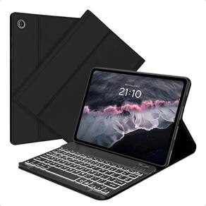 Esta capa com teclado Bluetooth foi desenvolvida para transformar o tablet em uma ferramenta mais prática para trabalho, estudo e digitação. É um modelo compatível com Windows, Android e iOS, trazendo versatilidade para diferentes dispositivos. O teclado é totalmente removível e se conecta por Bluetooth, permitindo usá-lo tanto acoplado à capa quanto separado. A capa funciona como suporte, permitindo posicionar o tablet em ângulos adequados para digitação, leitura ou reprodução de vídeos. O conjunto possui um compartimento para caneta e oferece proteção completa para o tablet, cobrindo laterais, cantos e parte traseira. A bateria do teclado possui longa duração, proporcionando muitas horas de uso antes de precisar recarregar.